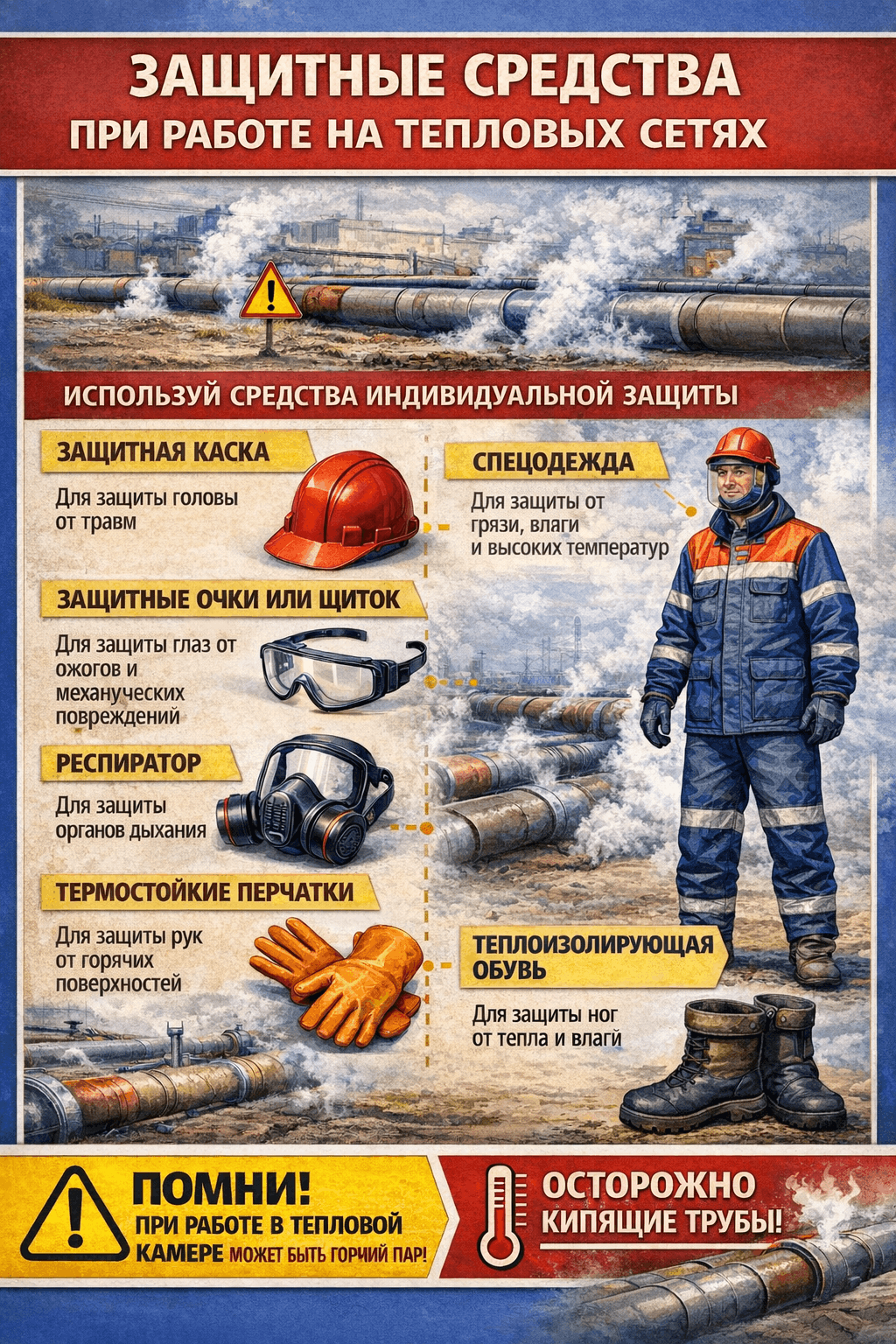 При проведении работ на объектах тепловых сетей особое внимание уделяется: